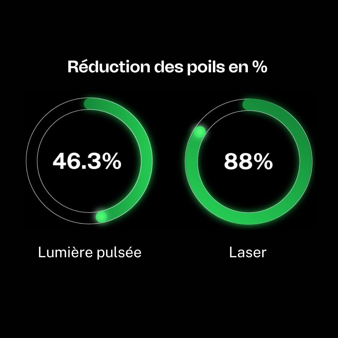 Le laser est généralement considéré comme plus efficace que l'IPL pour l'épilation, permettant une épilation définitive plutôt qu'une réduction temporaire des poils. Utilisant une longueur d'onde unique et focalisée, reconnue comme la plus efficace pour neutraliser les follicules pileux, la technologie laser cible les poils avec précision et efficacité, réduisant ainsi le nombre de séances nécessaires pour obtenir des résultats permanents cliniquement prouvés.